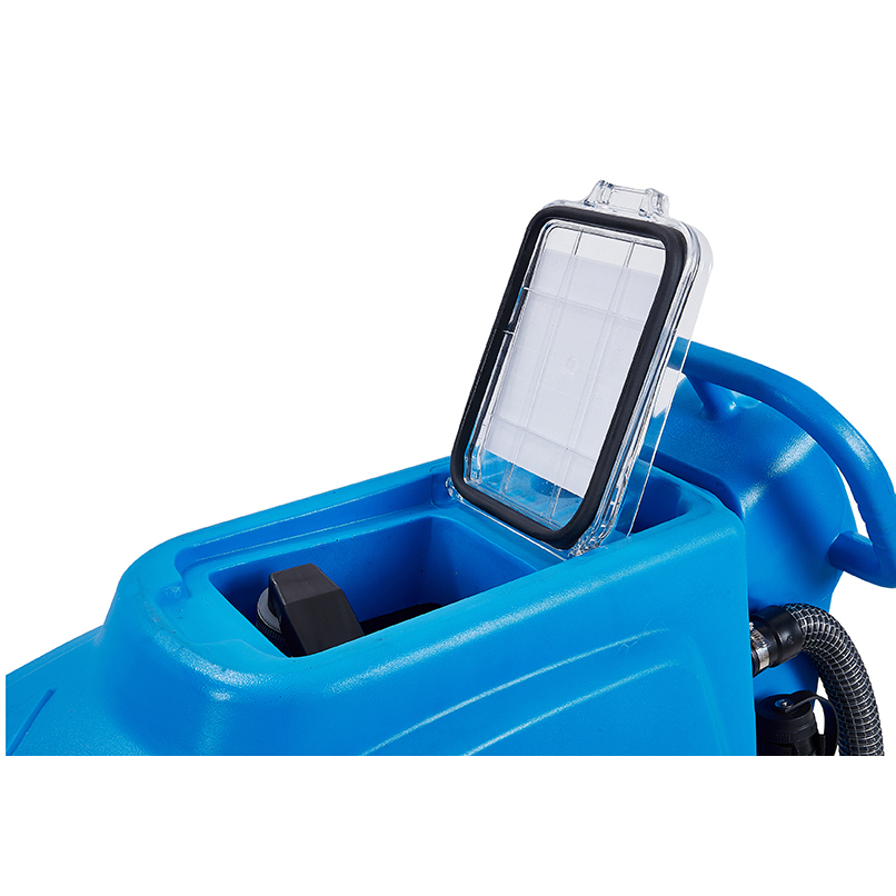 三,每次手推式洗地機(jī)工作完把污水放掉,用水管或者噴槍對(duì)污水箱進(jìn)行清洗。保證污水箱及其密封周圍的清潔,防止堆積的污物阻塞污水箱。